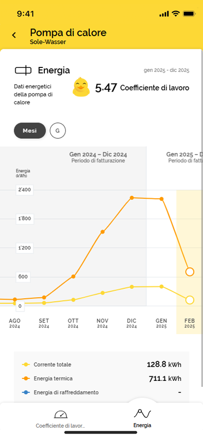 L’app «NeoVac myEnergy» vi mostra in dettaglio l’efficienza dei vostri sistemi di pompe di calore, anche sullo smartphone. Potete non solo visualizzare i valori attuali del vostro coefficiente di rendimento, ma anche analizzare i dati storici. In questo modo potete individuare le tendenze e valutare l’efficienza del vostro impianto per periodi di tempo prolungati.